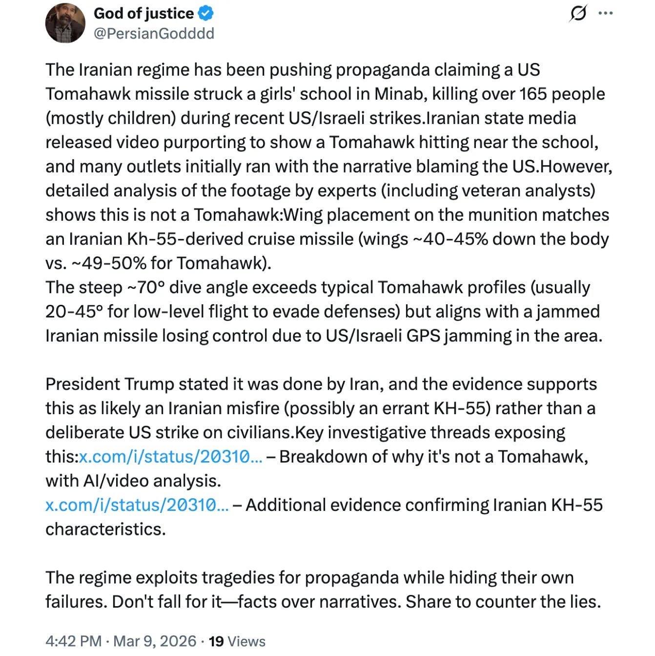 None of this proves a final answer about what happened in Minab. But it does serve as a reminder that in wartime—especially in an era of instantaneous media narratives—it may be wise to pause before accepting the first version of events as the definitive one.